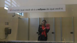 - O que mais me impressionou nessa edição foi o cuidado dentro do banheiro. Adesivos nos espelhos e dentro das cabines traziam frases inspiradoras e nos conectando com o momento presente;